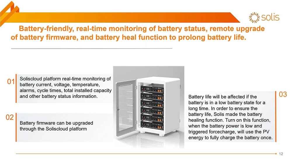 7.The battery’s DC side can handle a maximum charge/discharge current of up to290A, allowing it to store more surplus energy generated by PV systems
